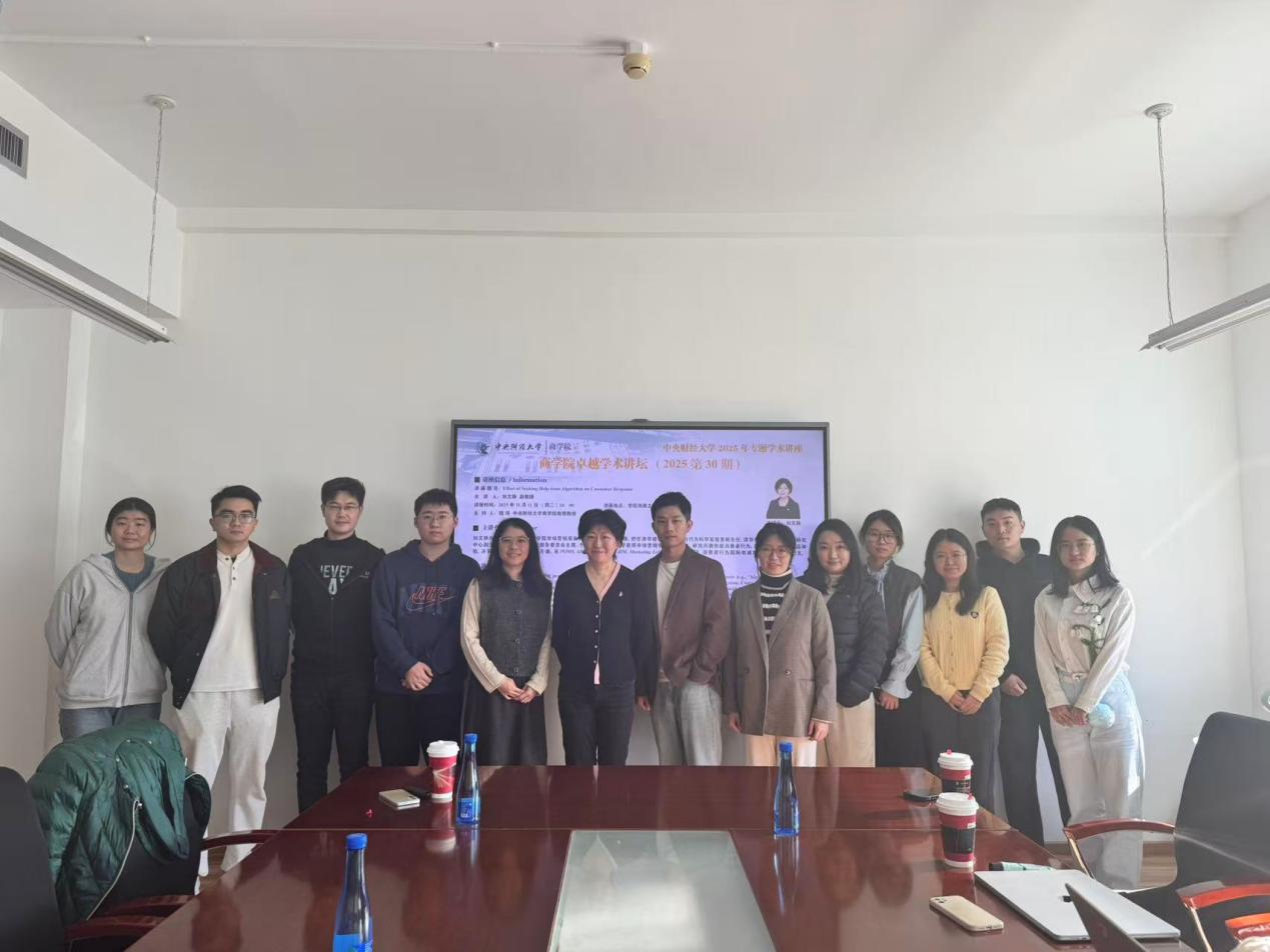 11月11日上午,中央财经大学2025年专题学术讲座暨商学院卓越学术讲坛在学院南路校区主教学楼615会议室成功举行。本次讲座邀请清华大学刘文静副教授作为主讲嘉宾,主题为“Algorithm Please: Effect of Creators Seeking Help from Algorithms on Consumer Reaction”。讲座由商学院助理教授魏闯主持。