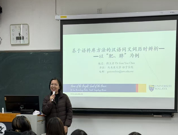 11月6日,中央财经大学2025年专题学术讲座在沙河校区成功举办。本次讲座特邀马来亚大学语言学院中文应用语言学高级讲师、博士生导师颜玉君老师主讲,以《基于语料库方法的汉语同义词历时辨析——以“肥、胖”为例》为题带来深度学术分享。讲座由文化与传媒学院庄卉洁副教授主持。