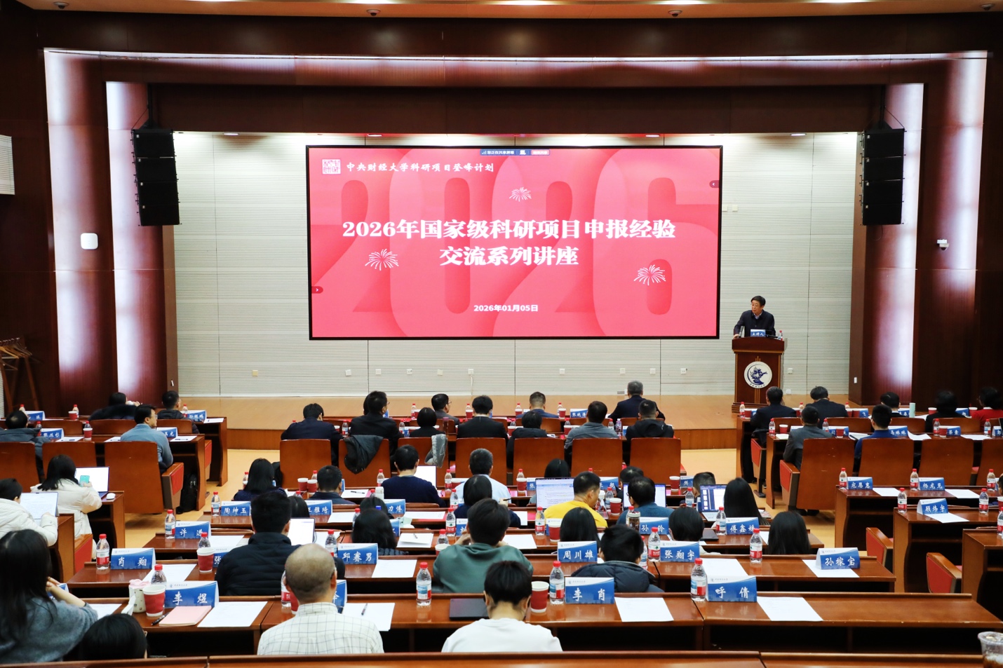 2026年1月5日,我校2026年“中央财经大学科研项目登峰计划”系列讲座在学术会堂202报告厅举行。上午进行了国家社科基金、国家自科基金项目申报经验交流讲座,邀请的讲座嘉宾分别为经济学院徐翔教授、社会与心理学院庄家炽副教授、财政税务学院孙鲲鹏副院长、金融学院郭俊杰副教授。下午进行了国家级重大科研项目申报经验交流讲座,邀请的讲座嘉宾分别为校党委常委、副校长陈斌开教授,政府管理学院院长姜玲教授,国际经济与贸易学院张龙天副教授。上下午讲座分别由科研处副处长梁上坤、科研处处长张晓涛主持。
