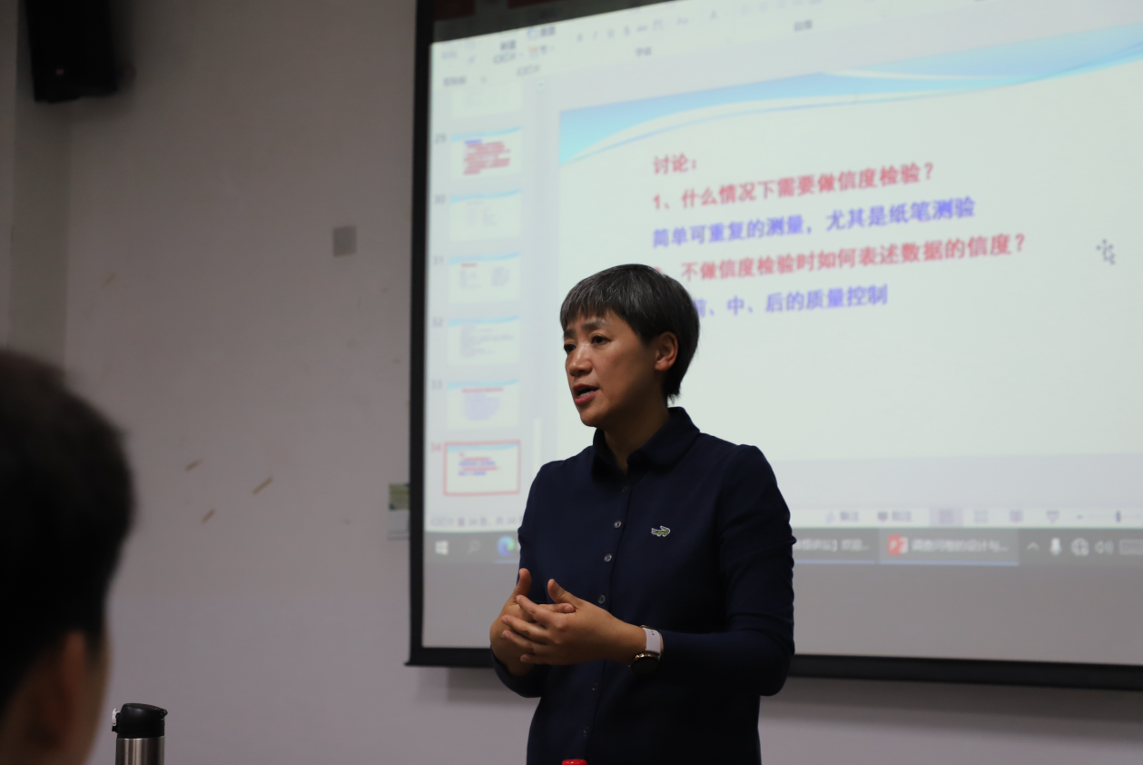 在介绍了问卷设计的原则和方法后,任弘教授进一步深入讲解了问卷信度与效度检验这一核心问题。她清晰阐明了信度(可靠性)与效度(有效性)的概念差异,并介绍了包括重测信度、内部一致性信度、内容效度、结构效度等多种检验方法。任教授强调,严谨的信效度检验是保障问卷调查数据质量、支撑研究结论科学性的基础,是学术研究中不可缺少的关键环节。